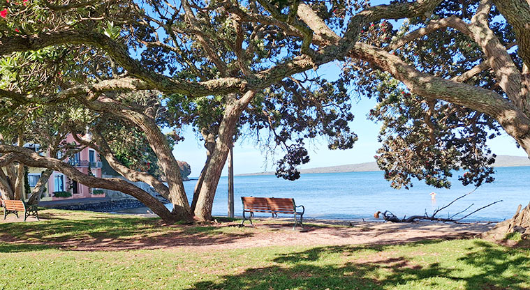 This long narrow reserve along the coast line looks out over the Hauraki Gulf.
