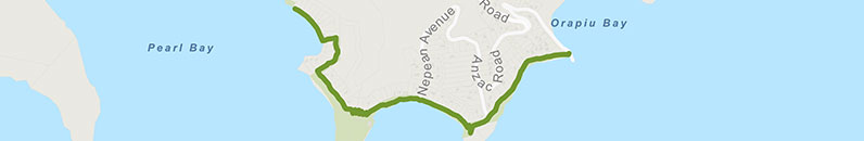 This is a there-and-back walk, which will take about 30 minutes each way. You will be rewarded with views across the water to Ponui Island, and the Hunua Ranges.