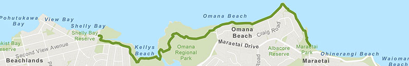 You can start at either end, from Maraetai Park (off Maraetai Drive), or from the end of Second View Avenue in Beachlands. If you don't want to do the whole ride, start at one of the access points from Ōmana Esplanade Reserve, Ōmana Regional Park or Te Puru Park. Parking is available in these locations.