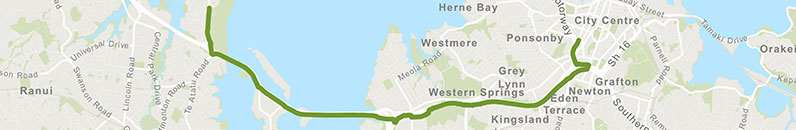 A fantastic commuter route between Te Atatū and Auckland city centre, that is almost entirely separated from traffic.