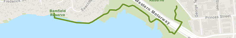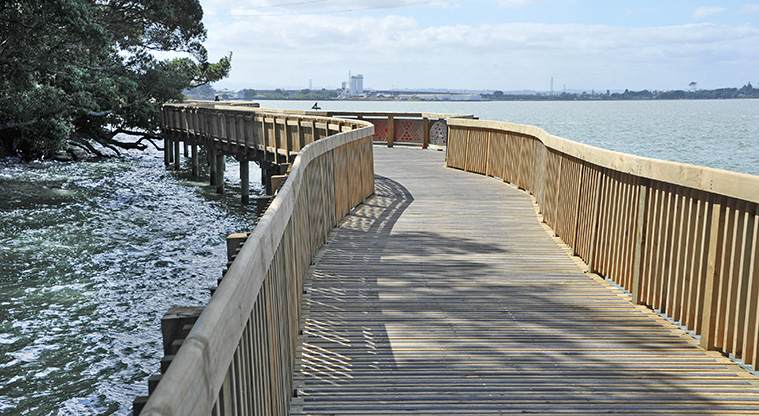 Start this path at Onehunga Bay Reserve, where you can go for a walk and enjoy many points of interest. There's also a kid's playground and exercise equipment.