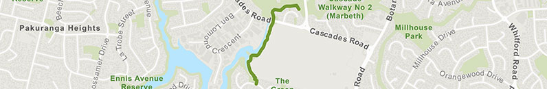 A secluded, scenic path running along Pakuranga Creek from West Fairway to Aviemore Drive.