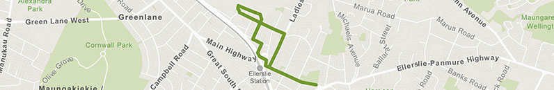 At Ellerslie Domain, take a quick pit stop. There's a kids playground if you have children with you. Then re-trace your steps towards Ellerslie centre. Turn right and walk up Ladies Mile, passing the historic Christ Church, a wooden gothic church that was opened in 1883. Notice the many different architectural styles including classic New Zealand villas.