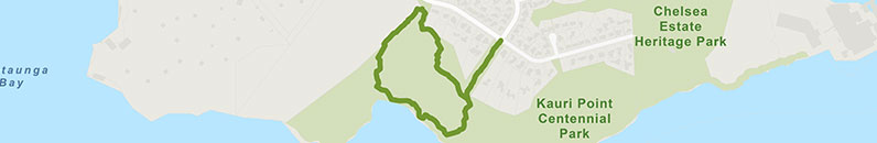 Start on Onetaunga Road, opposite Chelsea View Drive. Follow the signposted Brian Norton track through Kauri Point Centennial Park to Kendall Bay.