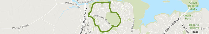 From here, stroll down Harris Drive, along Kereru Lane, then head right along the bush-clad path. Cross the bridge through Harris Park, and continue down Timberland Drive until you reach Millwater Parkway.