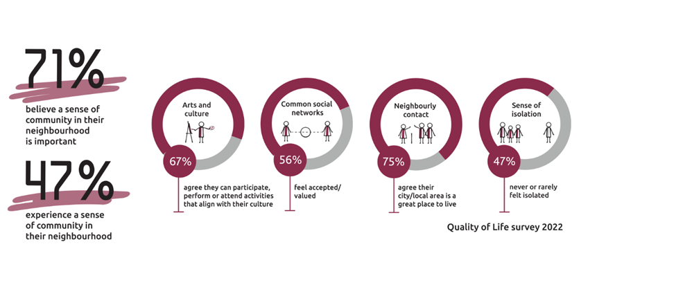 Belonging can also be influenced by how well, and how easily, people can see themselves reflected in civic and community life, in positions of leadership, decision-making and in public spaces.