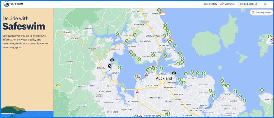 On the website you will find up-to-date information about Auckland's beaches, including: