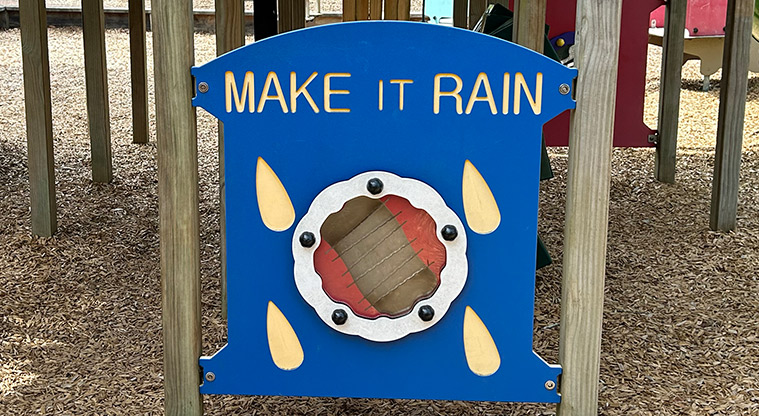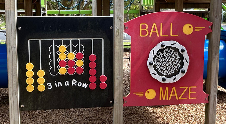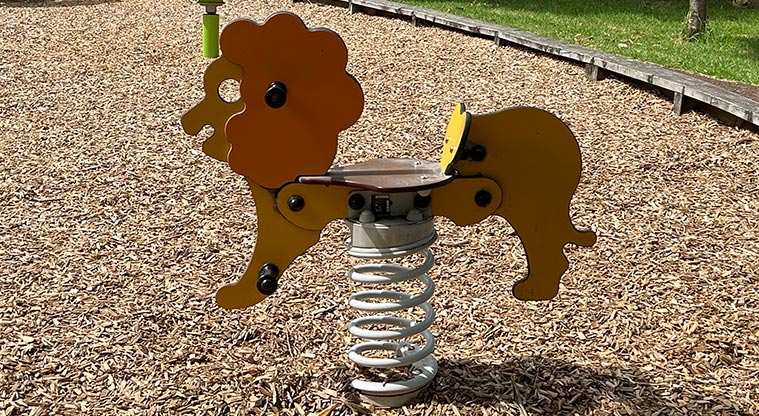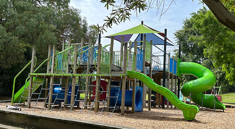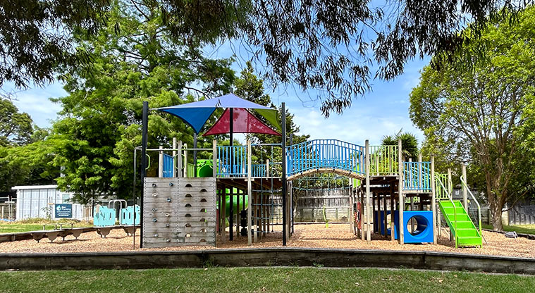 A playground, flying fox and seat are inside the reserve.