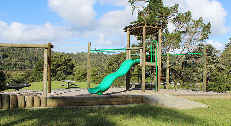 Takaranga Reserve does not have any formed paths or accessible features, though the play space does have ramps. Parking is restricted to the street as there are no dedicated carparking spaces available within the park.