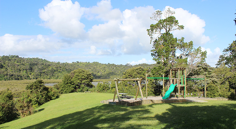 Takaranga Reserve is a small neighbourhood park that can be accessed from Staley Road or its neighbour Armour Bay Reserve. The park has a play space designed with natural materials and to provide experiences for children of various ages.