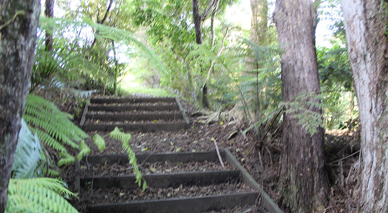 The walking track to Armour Bay Reserve is unsealed and includes stairs.