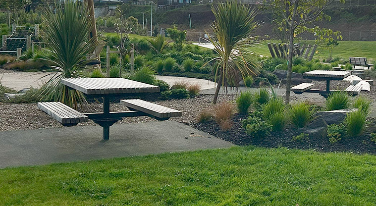 Picnic tables, seating, parking (including two mobility parking spaces) and a drinking fountain are inside the reserve. The nearest public toilets are at Three Kings Reserve.