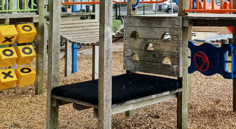 A playground, seating, accessible toilets and a water fountain are inside the park.