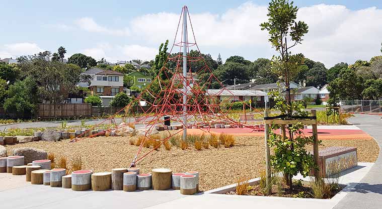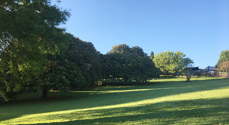 On the right is a large open grassed area with established trees - perfect for a picnic or for the kids to kick a ball around. The Mount Roskill Kindergarten is at the top of the hill.