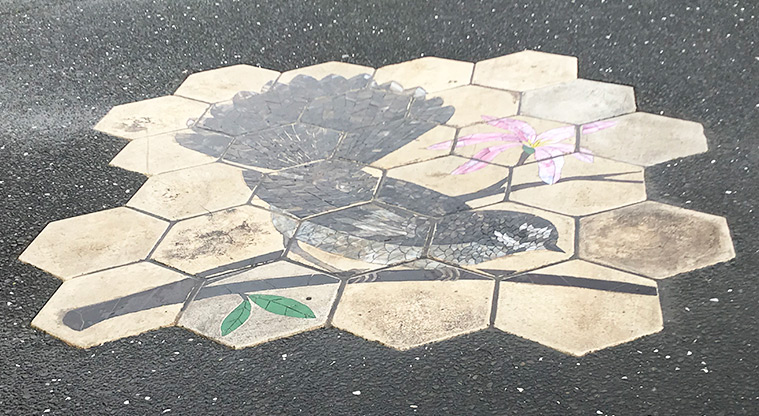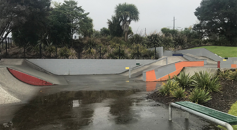 A wide concrete walkway runs the length of this park, connecting the play space and skatepark areas together, past the train station entrance. This route provides access to all features of the park, including the accessible toilets.