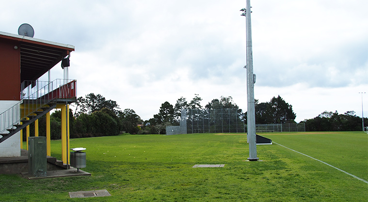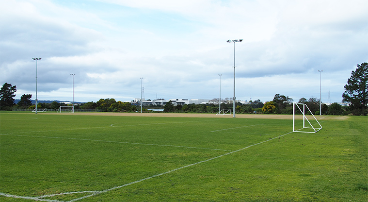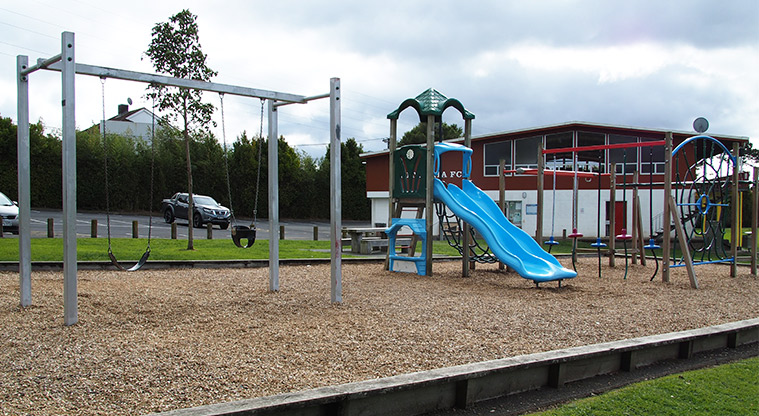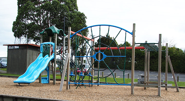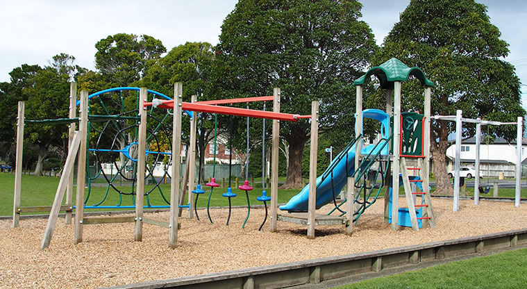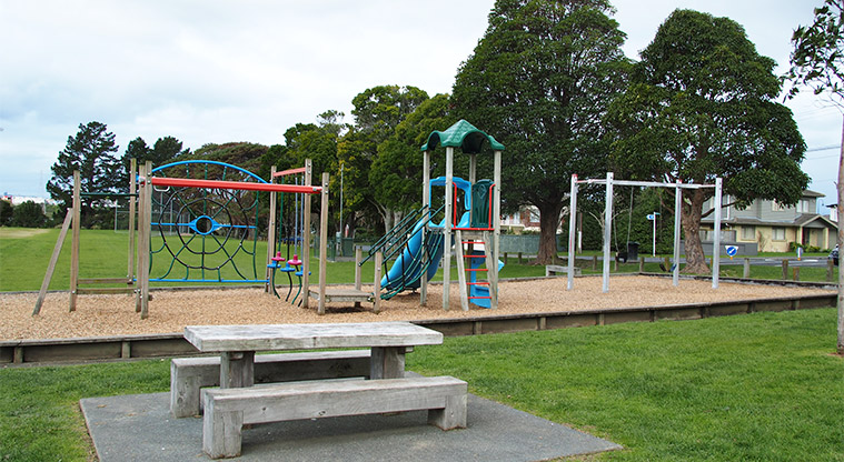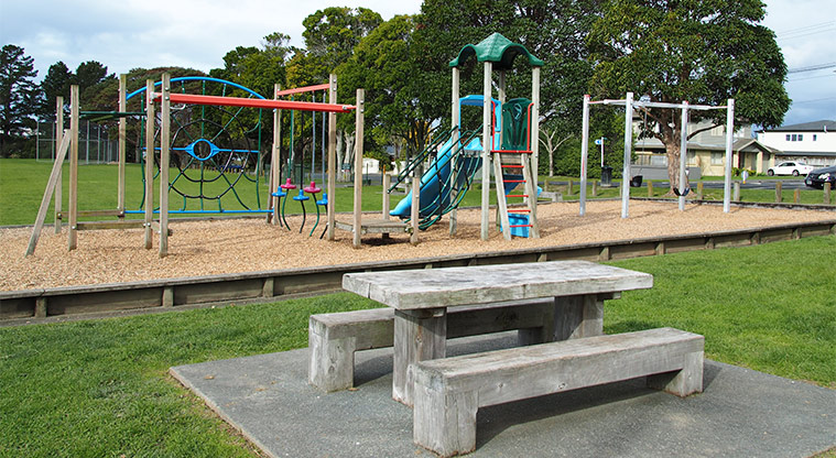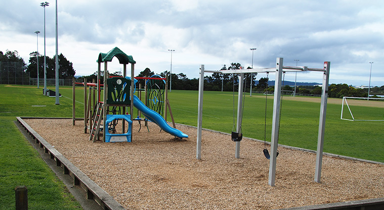 A playground, car park, toilets, sports fields, drinking fountain, picnic table and seating are inside the park.