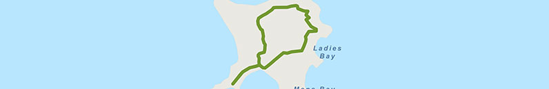 The track passes Ladies Bay, where the female inhabitants of the island would swim in private, away from the men. Beyond that is a pond which is home to the rare pāteke / brown teal.