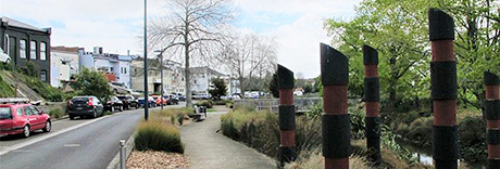 The Te Ara Wai / River Lane Esplanade Reserve is part of the historic Waiuku (or Te Pai O Kaiwaka) portage, a Māori portage route connecting the Waikato River with the Manukau Harbour. You will see wharf-like piles which tie together both sides of the river’s edge.