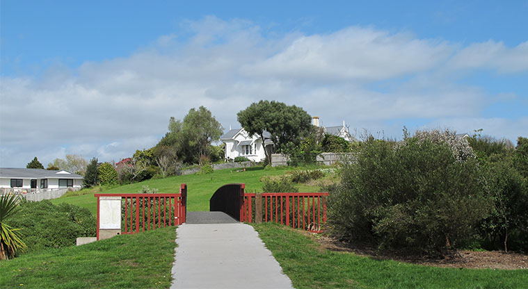 You will cross over a walking bridge before going into Ngaati Urupikia / Riverside Drive Recreation Reserve. There is plenty of green space to pause for a sitdown and admire the scenery.