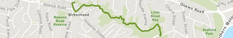 The bushwalk emerges at 251 Hinemoa Street. Opposite is the iconic Birkenhead Library and Civic Centre building. Check out what's on offer, and admire the sweeping sea views from the balcony.